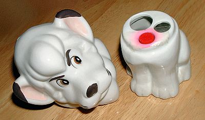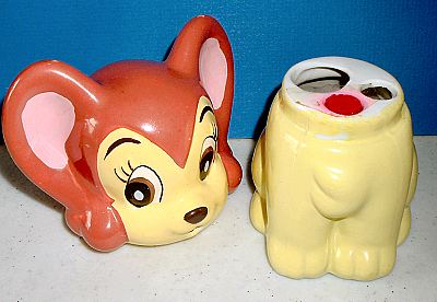 Each figure's head is removable, and inside there is room for desk supplies. There is also an ink pad, although due to the age of these items it may need refreshing to be usable.