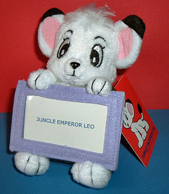 This is an new, original Japanese Kimba (Jungle Emperor Leo) plush with a photo frame attached. It measures approximately 5 inches high. The opening for the photo you insert is 2.5 inches by 1-3/8 inches.
