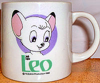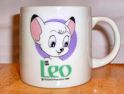 This is an original Japanese china mug, featuring a picture of Kimba. The mug measures approximately 3 inches high by 2-7/8 inches diameter. It is NEW and unused.