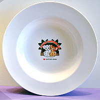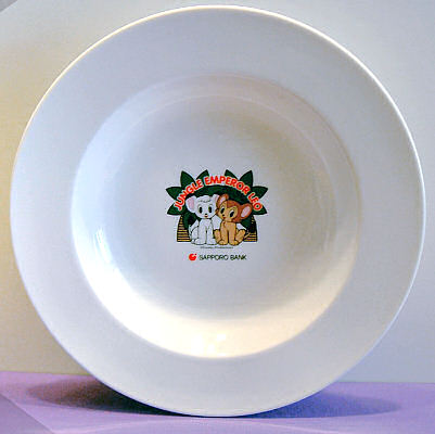 DescriptionThis is a new china plate (not plastic or stoneware) featuring both Kimba and Kitty. This pasta or salad plate measures 9 1/8 inches in diameter and is 1 7/16 inches deep measured on the outside.![]() The image on the bottom of the plate measures 2 1/8 inches high, including the writing. ![]() The plate is new and in mint condition. |