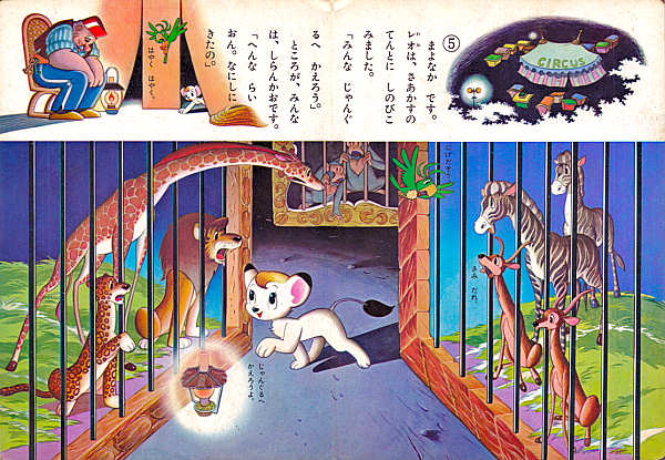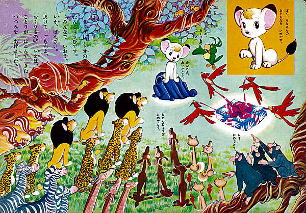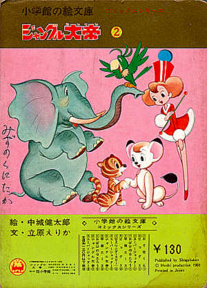 DescriptionThis is an original vintage Japanese child's board book of Kimba the White Lion (Jungle Emperor). It measures approximately 10.5 inches high by 7.5 inches wide. It is used with minor wear. There are small stains on some pages and the back cover. In general the colors are very bright and the book displays very nicely. Some sample pages are shown below.![]() ![]() ![]() ![]() This book is overall in excellent condition for its age. It has 16 pages and shows Kimba sailing off from the jungle in a hot air balloon, finding a circus, and befriending the animals there. |